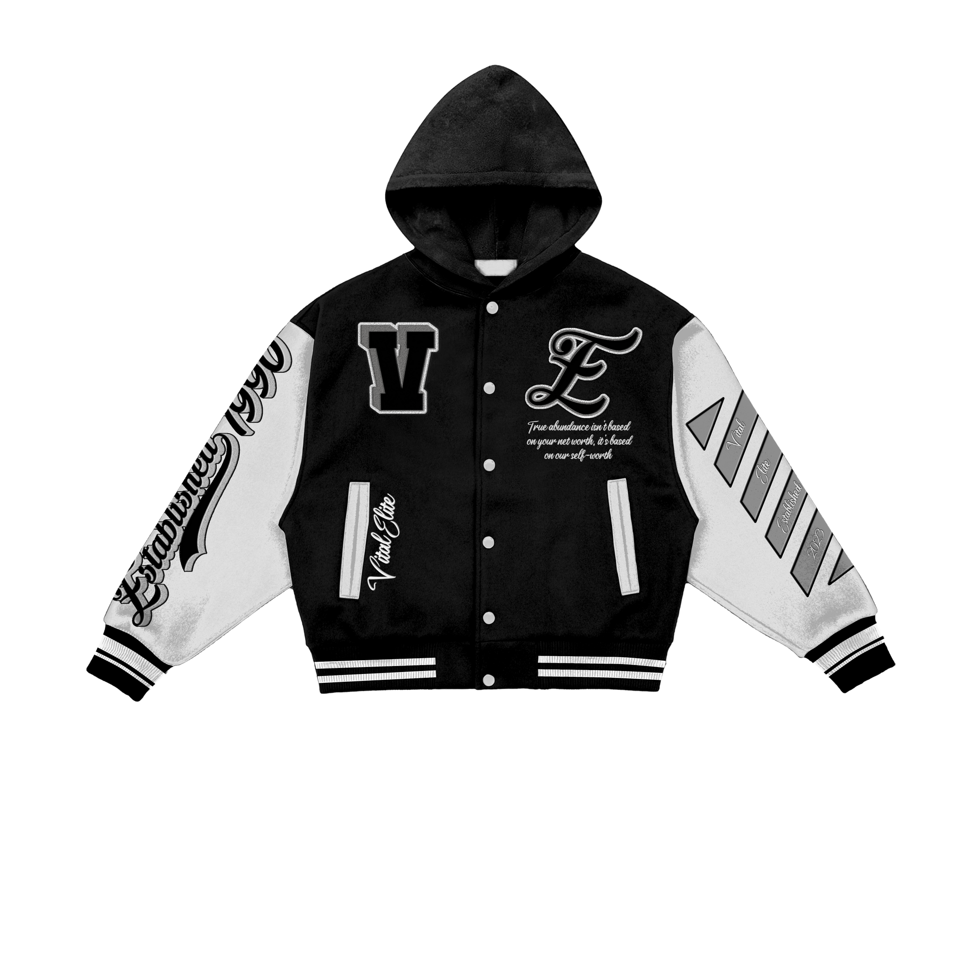 VitalElite Varsity Jackets stand for strength, a top-tier elite mindset, and bold style. Blending luxury streetwear with sharp sophistication, they symbolize the victories that come with living the Elite Crew lifestyle.